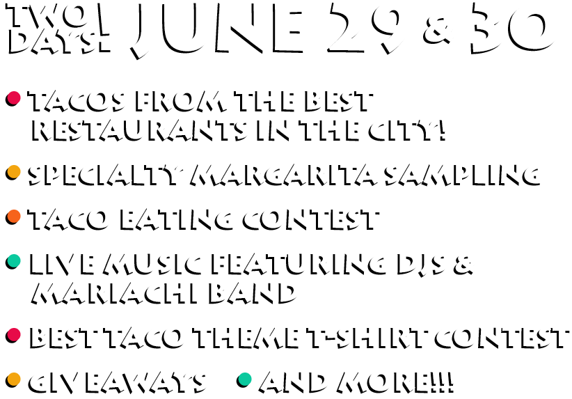 6:00 – 10:00pm Includes 3 taco tickets and 3 margarita tickets